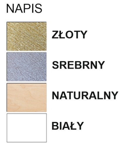 Obok zdjęcia wzorników. W przypadku braku podania wzoru realizujemy najchętniej wybierany wzór i kolor napisu na wieszakach.