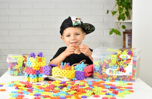 Tylko od wyobraźni dziecka zależy, w jaki kształt zamienią się podobne do puzzli płaskie elementy, łatwe w łączeniu jak w i demontażu. Tak duży zestaw zajmie dziecko na długie godziny, pozwoli też włączyć się w zabawę rodzicom i rodzeństwu.
