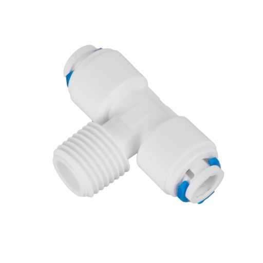 AF-MBT-0404-QC Trójnik stosowany jest np. do filtrów wody, lodówek, kostkarek i innych urządzeń korzystających z wężyków 6,4mm.