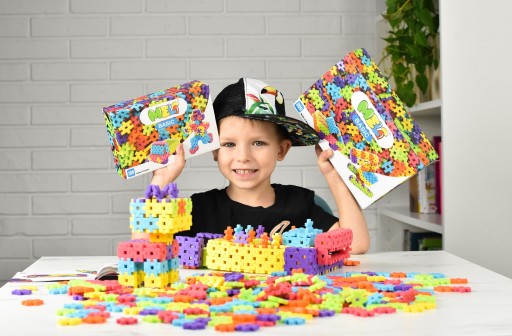 Tylko od wyobraźni dziecka zależy, w jaki kształt zamienią się podobne do puzzli płaskie elementy, łatwe w łączeniu jak w i demontażu. Tak duży zestaw zajmie dziecko na długie godziny, pozwoli też włączyć się w zabawę rodzicom i rodzeństwu.
