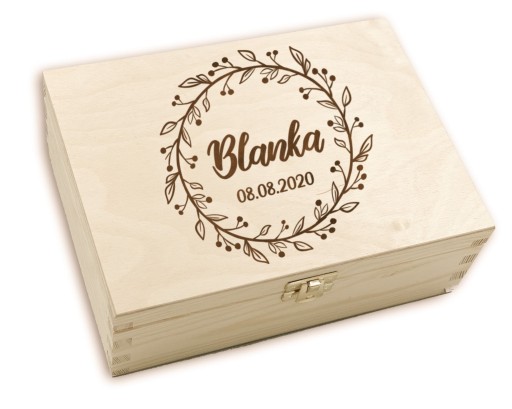 Oferujemy drewniane pudełko wspomnień z przegródkami jako wyjątkowy prezent na chrzest, roczek lub inną okazję.