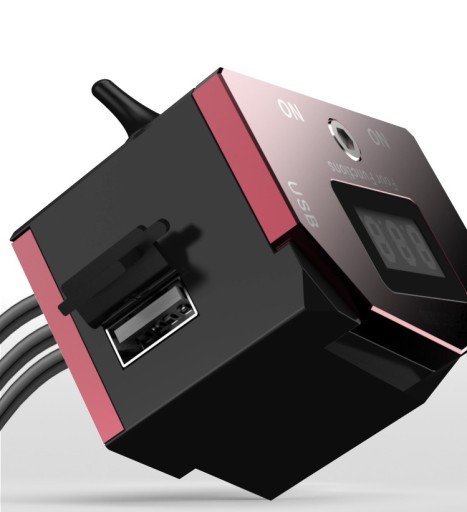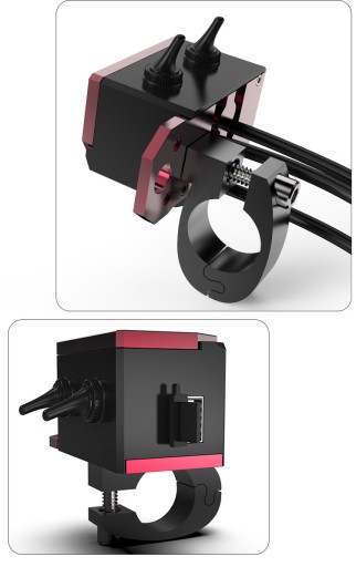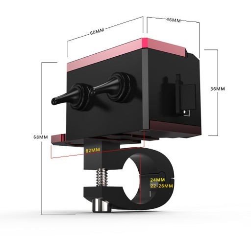 PRZEŁĄCZNIK PODWÓJNY Z WOLTOMIERZEM I ŁADOWARKĄ USB ,DO MOTOCYKLA Z OBEJMĄ NA KIEROWNICĘ 22-25 MM I UCHWYTEM DO MONTAŻU NP POD LUSTERKIEM ,WYKONANY Z ALUMINIUM. WYMIARY PODANE NA ZDJĘCIU.