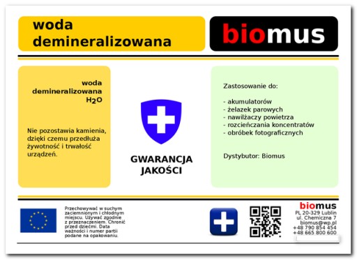 ВОДА ДЕМИНЕРАЛИЗОВАННАЯ БИОМУС чистая 1л