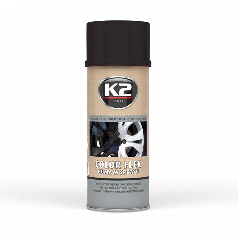 COLOR FLEX zapewnia efektowny wygląd i skuteczną ochronę. Zabezpiecza przed zarysowaniami, brudem, wilgocią, korozją, olejami, smarami. Nadaje się do nanoszenia na elementy lakierowane, felgi stalowe i aluminiowe, zderzaki, drewno, metal, i wiele innych.