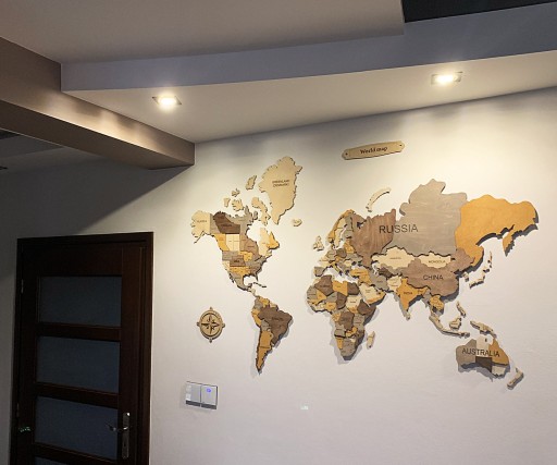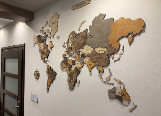 Ciesz się drewnianą mapą świata 3D 95x150cm - mapa świata jest fantastycznym dodatkiem do każdego wnętrza. Dzięki zastosowaniu czterech różnych grubości drewna, oraz zróżnicowaniu kolorystycznemu różnych warstw, mapa nabiera trójwymiarowego wyglądu i świetnie się wpisze w klimat każdego mieszkania.