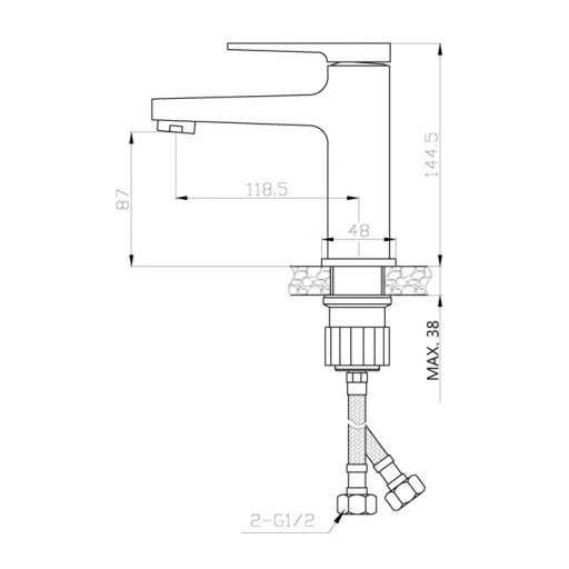 W KOMPLECIE: bateria, wężyki, zestaw montażowy, korek klik-klak w kolorze czarnym
