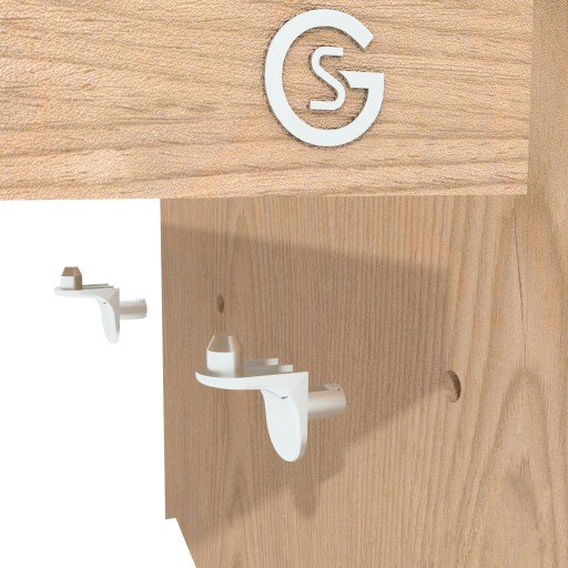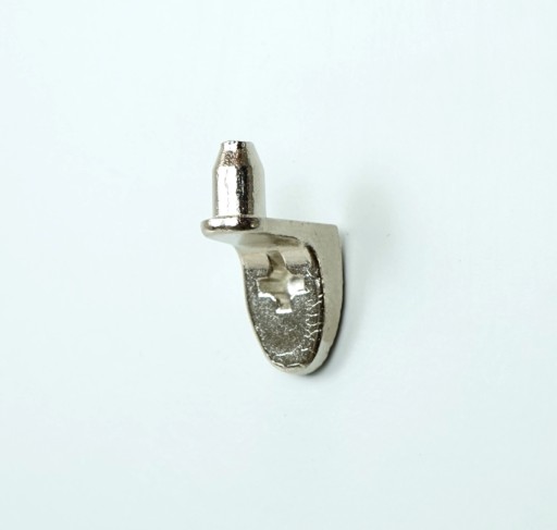 Podpórki do półek stosowane są w półkach drewnianych lub z płyty meblowej. Podpórka posiada dwa bolce do montażu w korpusie mebla oraz w półce. Zabezpiecza to przed wypadnięciem półki, polecana jest do różnego typu zabudowy otwartej oraz wymagającej względów bezpieczeństwa uniemożliwiając wysunięcie półki. Podpórkę polecamy szczególnie do miejsc gdzie istnieje ryzyko wysunięcia półki - wystający bolec skutecznie blokuje i zabezpiecza półkę przed wysunięciem. Podpórkę montuje się poprzez przykręcenie przez nacięcie na wkrętak PZD bezpośrednio w otwór w płycie.