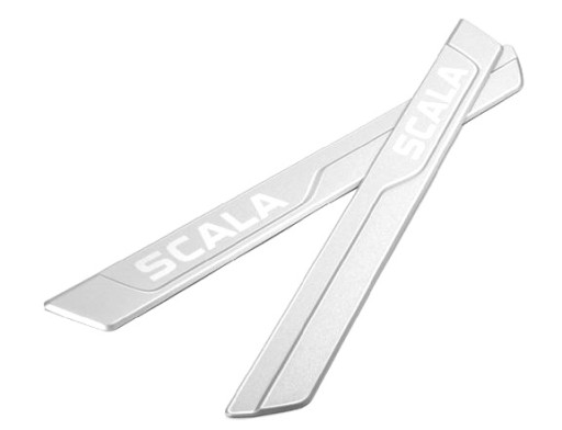 Ozdobne nakładki na progi - wkładki ALU z oferty oryginalnych akcesoriów ŠKODA są akcesorium, które można wykorzystać do poprawy estetyki pojazdu. Chronią lakier przed progiem drzwi przed brudem.