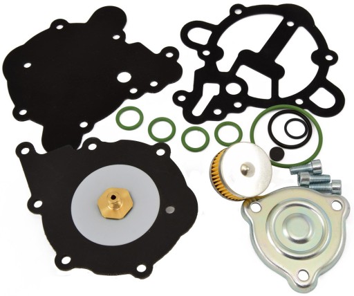 Jest to oryginalny włoski zestaw części przewidziany przez producenta reduktora do jego regeneracji. Oprócz membran zawiera również filtr fazy ciekłej wraz z uszczelkami do reduktora AT-09 oraz pokrywę obudowy tego filtra.