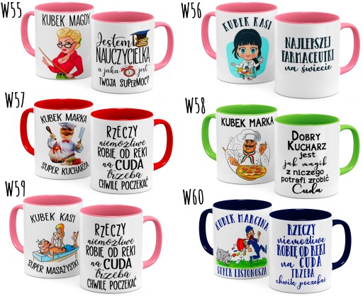 Prosimy o przesłanie, w wiadomości podczas składania zamówienia, imienia/imion do umieszczenia na kubku/kubkach oraz numeru/ów wybranych wzorów