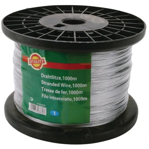 Bardzo mocna i wytrzymała linka stalowa do budowy ogrodzeń elektrycznych przeciw dzikom. Sposób splecenia zapewnia prawie 6 razy większą odporność na zrywanie niż zwykły drut nawet - 2 mm. Odporność na zrywanie wynosi 200 kg !!!Stosowana wszędzie tam gdzie wymagana jest duża wytrzymałość linii ogrodzenia, w ogrodzeniach upraw przeciw dzikom lub hodowli bydła. Dedykowana do wypasania silnych zwierząt takich jak bydło mięsne. Ponadto daje praktycznie maksymalną pewność w budowie ogrodzeń elektrycznych upraw przeciw dzikom i innej zwierzynie.