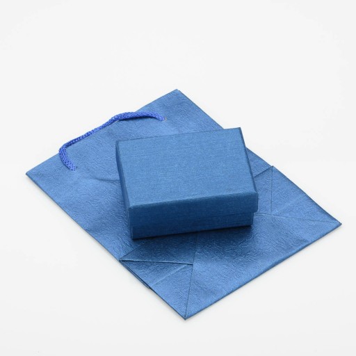 Ozdobne pudełeczko na spinki do mankietów, dostępne jest w trzech kolorach: niebieskim, ciemnozłotym i czarnym. Do kompletu ozdobna torebeczka dobrana pod kolor pudełka.
