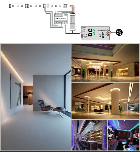 Dzięki zapotrzebowaniu na mniejszą moc Sterownik 12-24V może obsłużyć do 100% dłuższy odcinek taśmy 24V niż miałoby to miejsce w przypadku wykorzystania taśmy 12V.