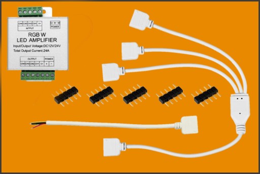 - 20m taśmy RGBW wymaga zasilacza 24V o mocy 250W