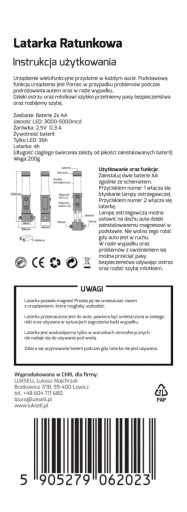 - magnetyczna podstawa pozwalająca na umocowanie latarki na samochodzie
