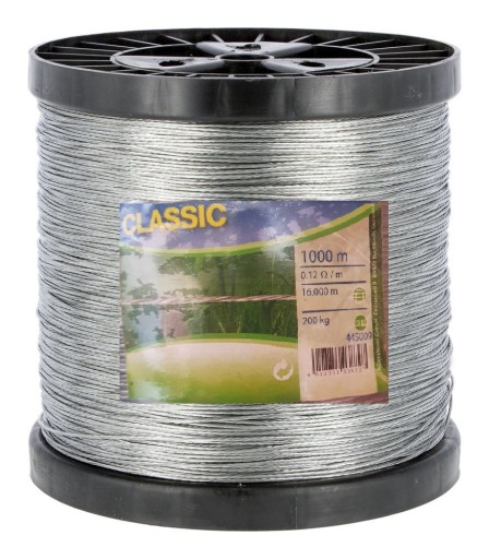Bardzo mocna i wytrzymała linka stalowa do budowy ogrodzeń elektrycznych przeciw dzikom. Sposób splecenia zapewnia prawie 6 razy większą odporność na zrywanie niż zwykły drut nawet - 2 mm. Odporność na zrywanie wynosi 200 kg !!!Stosowana wszędzie tam gdzie wymagana jest duża wytrzymałość linii ogrodzenia, w ogrodzeniach upraw przeciw dzikom lub hodowli bydła. Dedykowana do wypasania silnych zwierząt takich jak bydło mięsne. Ponadto daje praktycznie maksymalną pewność w budowie ogrodzeń elektrycznych upraw przeciw dzikom i innej zwierzynie.