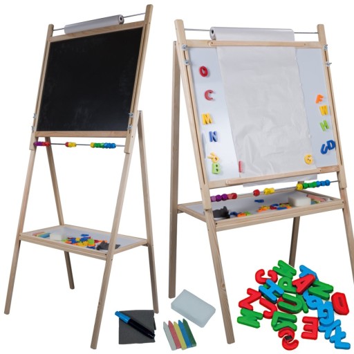 Drewniana, tablica magnetyczno-kredowa to świetny pomysł na kreatywną zabawę Twoich Pociech. Nauka przez zabawę to najlepszy sposób na prawidłowy rozwój dzieci. Tablica jest idealnym miejscem na ćwiczenie pierwszych literek oraz cyferek. To także świetne miejsce do rozwijania zmysłu artystycznego przez wykonywanie wspaniałych rysunków. Z jednej strony jest to tablica do pisania markerami, z drugiej - tablica kredowa. Tradycyjna tablica kredowa to wspaniała zabawa w szkołę w domu!