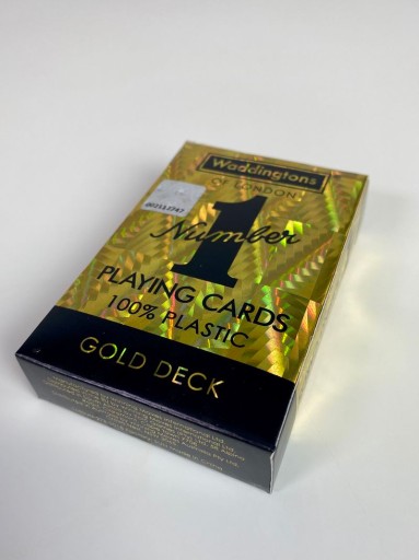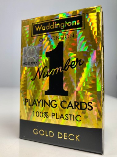 Do zaoferowania mamy najwyższej jakości ZŁOTE KARTY DO GRY Waddingtons, wyprodukowane przez uznaną, światową firmę Winning Moves. Karty są całkowicie wodoodporne i odporne na rozerwanie, wykonane w 100% z elastycznego, najlepszego plastiku. Jeśli karty do gry stają się wilgotne, można je po prostu wytrzeć suchą szmatką i kontynuować grę.