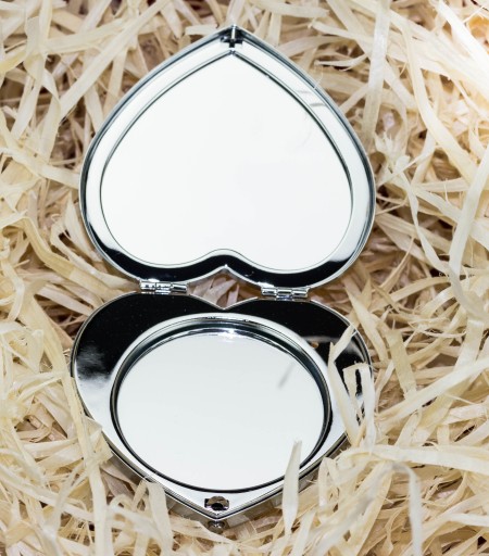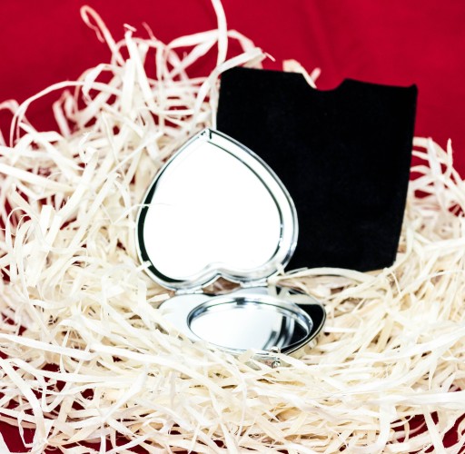 Metalowe lusterko kieszonkowe zapakowane w upominkowe pudełeczko Idealny i modny prezent dla kobiety
