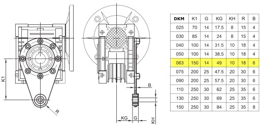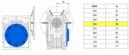 - przekładnia DKM zamienna jest z przekładniami NMRV / WMI / CMI / SMI / VMR