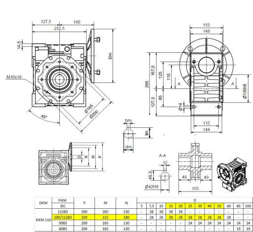- przekładnia DKM zamienna jest z przekładniami NMRV / WMI / CMI / SMI / VMR
