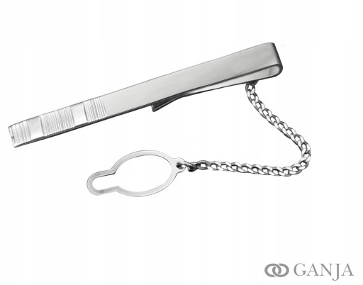 Długość 55 mm na 5 mm szerokość, łańcuszek 40 mm + zaczep na guzik, waga 4,8 gram, wykonane z próby srebra 925.