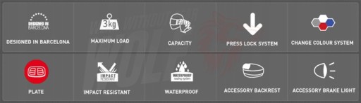 - Możliwość zainstalowania opcjonalnego oparcia dla pasażera oraz światła stopu