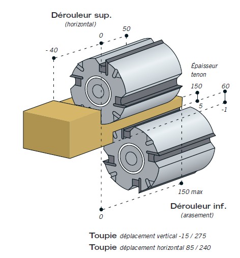 - Niezależna regulacja sterowana za pomocą mechanicznych liczników cyfrowych z pionowym przesunięciem 2 zespołów tnących jednocześnie