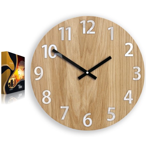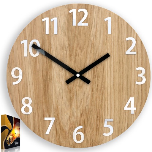 Zegar posiada tarczę (front 4 mm) z naturalnego drewna dębowego, podkładem jest płyta drzewna. Wykonany ze starannie przesegregowanego materiału wysokiej klasy. Zegar został zaimpregnowany naturalnym woskiem. Unikatowy i oryginalny dodatek do wnętrz