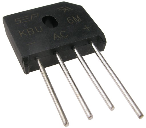 Mostek prostowniczy 6A/1000V KBU6M / KBU610. Wymiary: 19x22x7mm.
