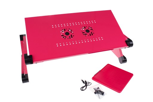 Podstawka wykonana jest z aluminium i można ustawiać ją na różne wysokości. Aby uniknąć przegrzania Twojego laptopa, stolik wyposażony jest w specjalne otwory oraz wbudowany wentylator.
