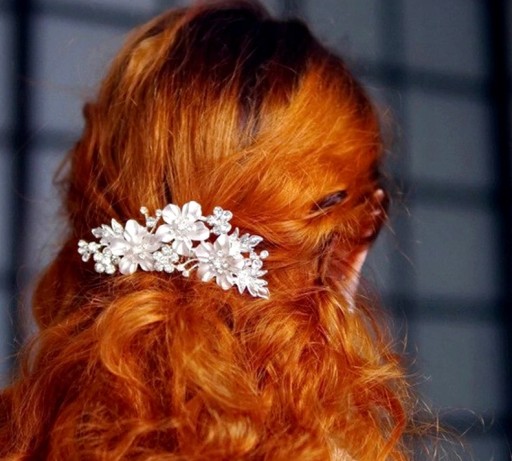 Grzebyk na ślub elegancka ozdoba do włosów srebrny kolor