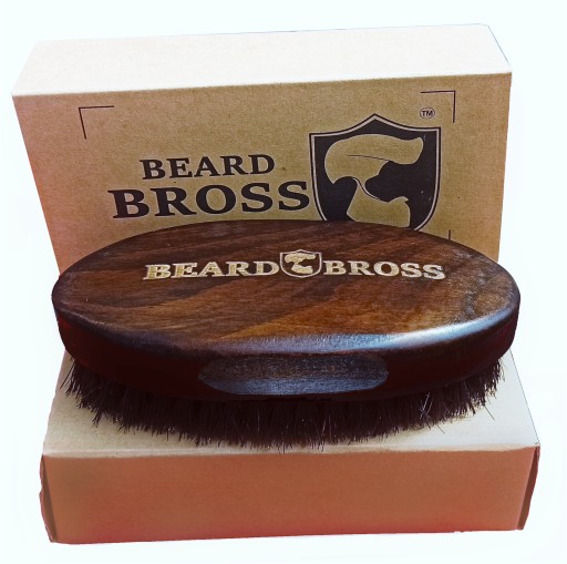 Ręcznie wykonana szczotka BEARD BROSS z rękojeścią z drewna akacjowego i włosiem z dzika o optymalnych rozmiarach 120/55/35mm idealnie leży w dłoni.