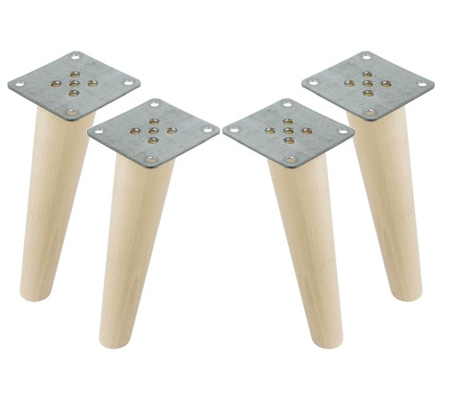 - Noga bukowa, surowa, toczona skośna. Jest to nasza oferta ekonomiczna - nóżka nie posiada otworów może być mocowana bezpośrednio do mebla lub za pomocą dołączonych blach montażowych na wkręty stożkowe o rozmiarze 3,5 mm dostępne w naszej ofercie (np. Numer oferty: 9132960875).