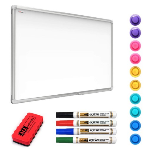 - ZESTAW - wraz z tablicą w zestawie znajdziemy kompletne wyposażenie pozwalające na natychmiastowe użytkowanie: zestaw montażowy, półkę na akcesoria, gąbkę, zestaw magnesów oraz zestaw markerów.