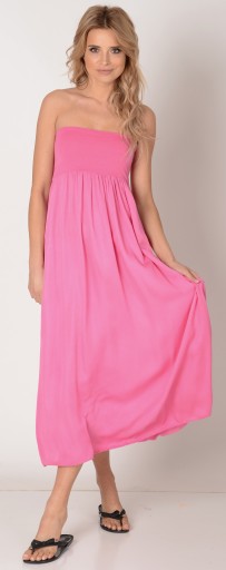 Zwiewna DŁUGA SPÓDNICA 2w1 SUKIENKA FUKSJA
