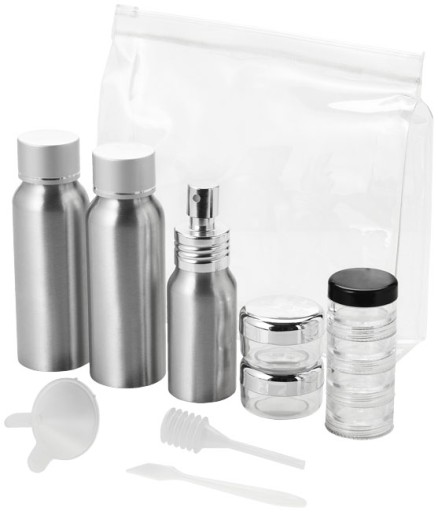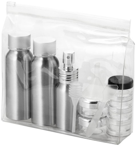 Niezwykle użyteczna, ekskluzywna przezroczysta kosmetyczka - zestaw do powtórnego napełniania. Idealne do perfum, toniku lub płynu antybakteryjnego do dezynfekcji rąk. Mały i poręczny zestaw, warto go mieć zawsze przy sobie. Atomizer można schować do kieszeni i mieć zawsze przy sobie.