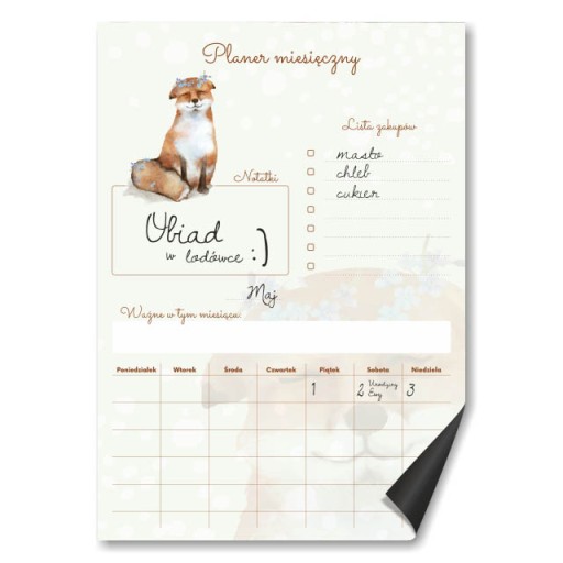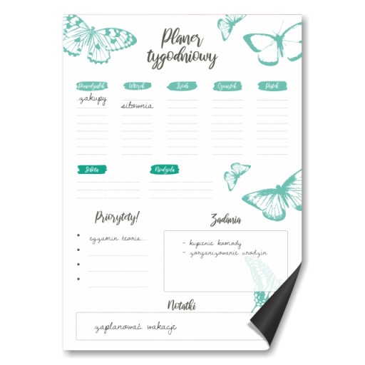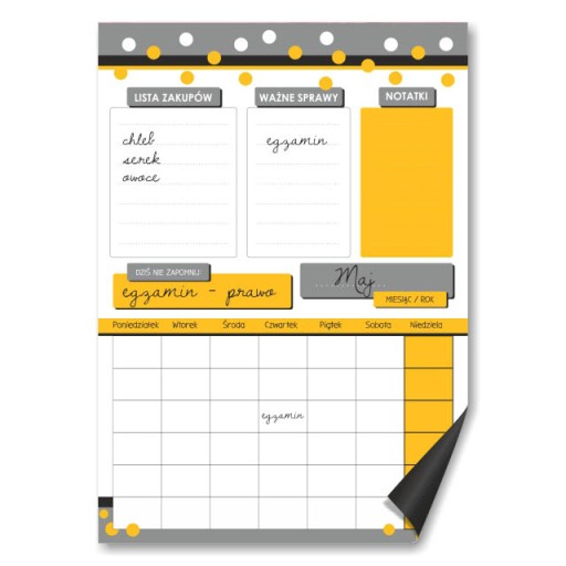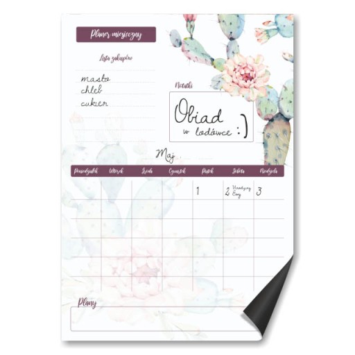UWAGA - W przypadku niepodania numeru szablonu, otrzymasz planer magnetyczny zgodny ze wzorem znajdującym się w miniaturze zakupionej aukcji i nie stanowi to podstawy do reklamacji