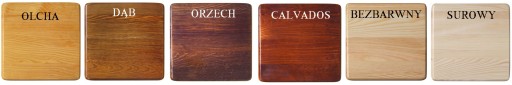 WERSJA DĄB, OLCHA, ORZECH, CALVADOS – blat jest bejcowany w danym kolorze a następnie pokryty lakierem bezbarwnym.