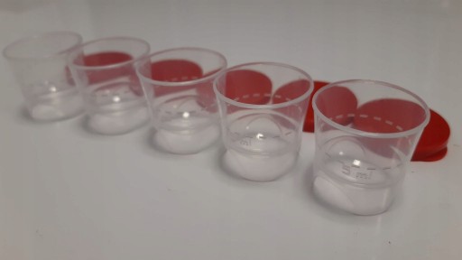 ✅ Kieliszki w połowie ( 5ml ) przedzielone wyraźną przerywaną linią.