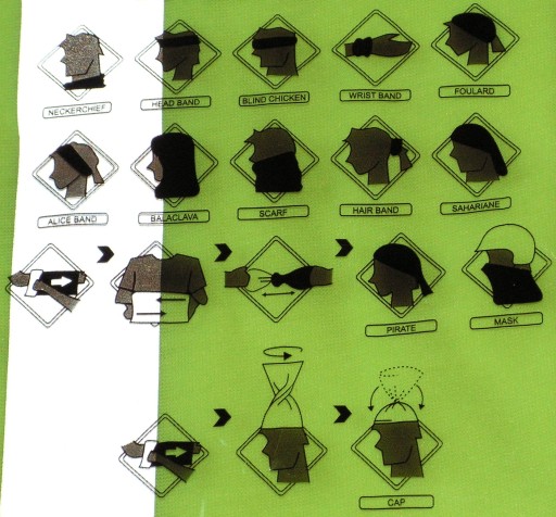 - Chustę można nosić na szyi jak komin, na twarzy jak maskę lub na głowie jako substytut opaski czy czapki.