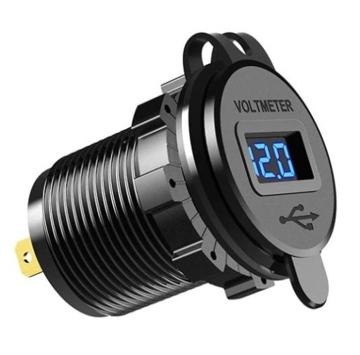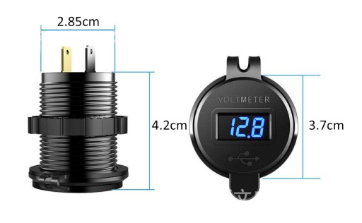 - Gumowa zaślepka chroniącą port USB z oknem na odczyt woltomierza