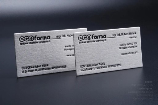 - Tłoczenie: Letterpress (wklęsłe)