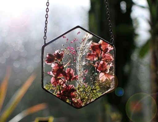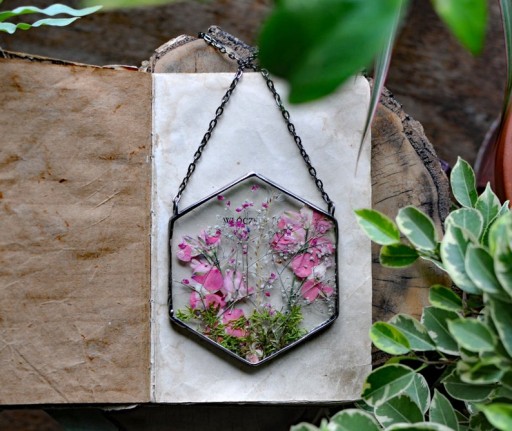 Zawieszki nieznacznie różnią się od siebie, ponieważ tworzone są z naturalnych roślin, a w przyrodzie nie istnieją dla identyczne egzemplarze. Staram się wybierać trwałe gatunki roślin do suszenia i zachowywania w moich malutkich okienkach, abyś mogła/mógł cieszyć się nimi jak najdłużej.