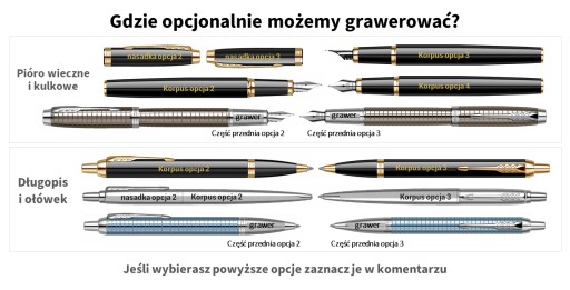 Informację o grawerze prosimy umieścić w komentarzu do sprzedającego, bądź w mailu zaraz po zakupie. Brak takiej informacji uznajemy jako zakup produktu bez graweru.