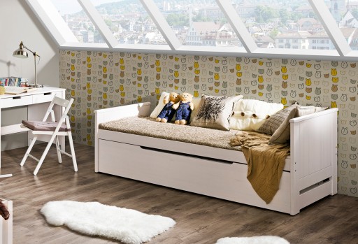 Łóżko TOMI 09 wykonane jest z drewna sosnowego. Dolna część wysuwana na prowadnicy z ogranicznikiem.