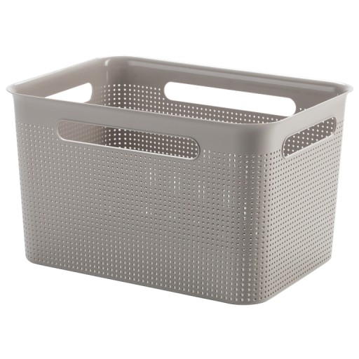 Pojemnik, koszyk do przechowywania Brisen charakteryzuje prosty i stylowy design. Świetnie komponuje się z klasyczną jak i nowoczesną aranżacją wnętrz. Unikalny i ergonomiczny kształt produktu pozwoli w prosty sposób zagospodarować wolną przestrzeń regału czy półki. Posiada uchwyty ułatwiające użytkowanie produktu. Wykonany z wysokiej jakości tworzywa sztucznego.