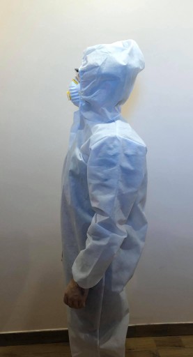 Kombinezon została wykonana z włókniny polipropylenowej o gramaturze 80g/m2