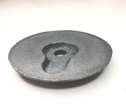 Żeliwny obciążnik do lamp. Obciążnik służy do stabilizacji konstrukcji lamp stołowych.Obciążnik posiada wgłębienie na przewód.