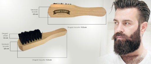 Stylizacja brody, wąsów. Szczotka Idealnie pielęgnuje i stylizuje wąsy, brodę. Ma właściwości antystatyczne. Łatwa w użyciu, rozmiar i twardość dostosowana do wygodnego rozczesywania. Przyczynia się do prawidłowej regulacji wydzielania sebum, odżywia skórę i chroni przez suchością brody. Zadaniem szczotki jest rozczesywanie zarostu, pozbawianie go resztek jedzenia i innych zanieczyszczeń oraz formowanie kształtnych fryzur.
